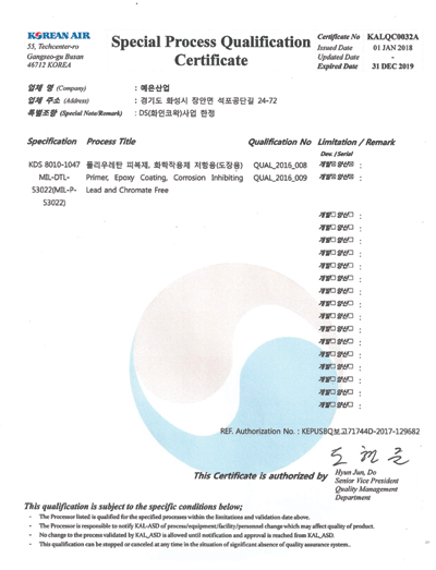 인증규격에 적합함을 인증받아 더 신뢰할 수 있는 기업으로 한발 더 앞장서게 되었으며, 고객님께 더 나은 서비스를 제공할 수 있도록 최선을 다하는 저희 예은산업(주)가 되겠습니다.